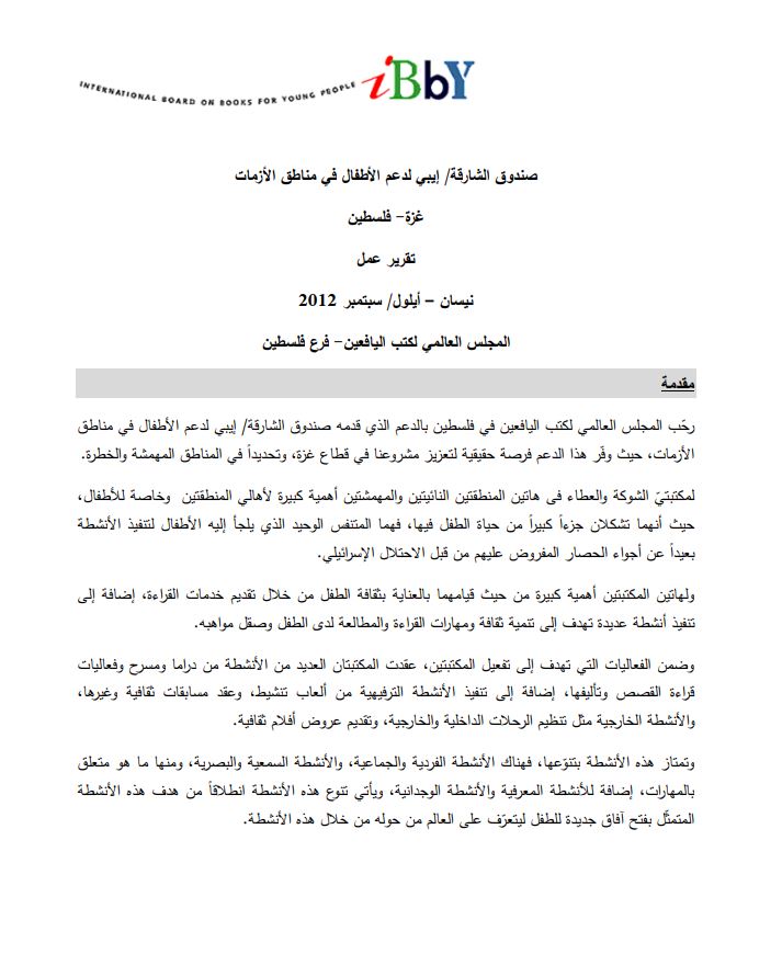 تقرير عمل: نيسان/أبريل–أيلول/سبتمبر 2012