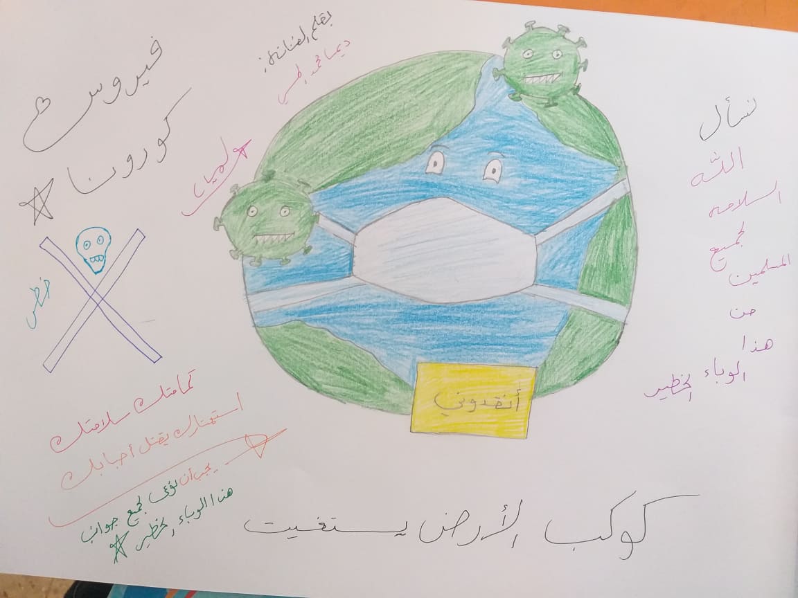 انا الطفل محمد عبد العال عمري عشرة اعوام ابي يعمل في احد المطاعم في مدينة غزة يتقاضى في اليوم ثلاثون شيقلا يدفع منهم عشرون شيقلا مواصلات وتبقى لنا عشرة يصرف بها علينا. وفجأة واذا بهذا الفايروس الذي بدا ينتشر في العالم كنت غير مهتم به كثيرا وكأنه شيئا عابرا ولكن احسست به بعد توقف ابي عن العمل، وعدم ذهابي الى المدرسة ابي نائم لا يعمل ولا يذهب الى اي مكان فهو جالس معنا في البيت ننتظر عودة ابي الى العمل لا يهمنا هذا الفايروس نريد ان يوفر لنا ابي احتياجاتنا .