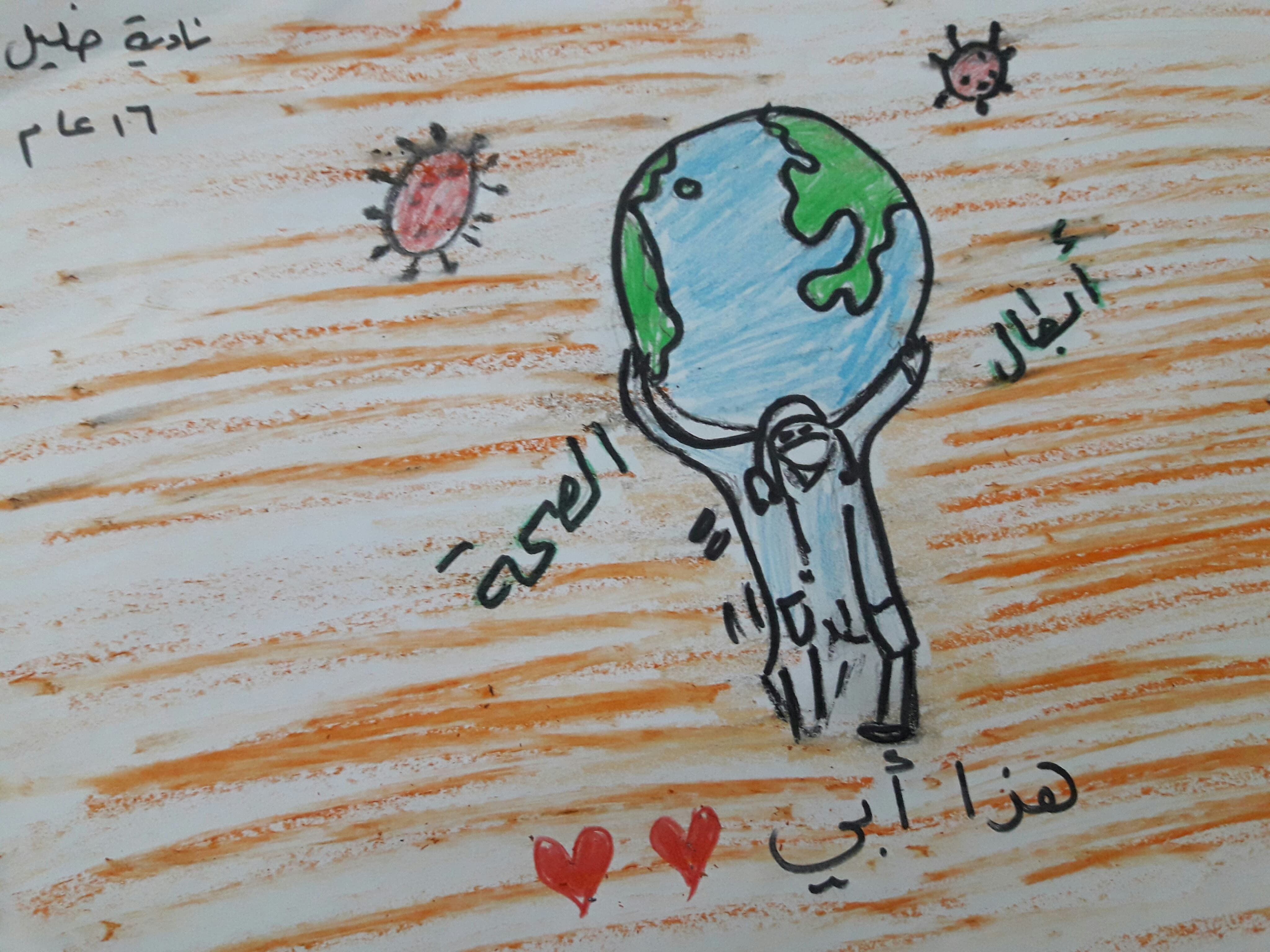 ابي الغالي اكتب لك انني شعرت بك اكثر وهذا الفضل يعود لفيروس كورونا. لا تستغربوا فانا كنت اعد ابي شخصا ثانويا في البيت رغم انه يوفر لنا كل متطلباتنا ويتعب تعبا شديدا في الحصول لنا على لقمة العيش في ظروفنا هذه القاسية. لكن خلال الحجر الصحي شعرت كم ابي حنون وقريب مني فأصبحت اقضي وقتا معه كانت مشاغله والبحث عن الرزق قد سلبته منا سابقا اصبح ابي يساعدنا في اعمال البيت بل انه يرسم معي ويرقص ويلعب حتى في العابي.