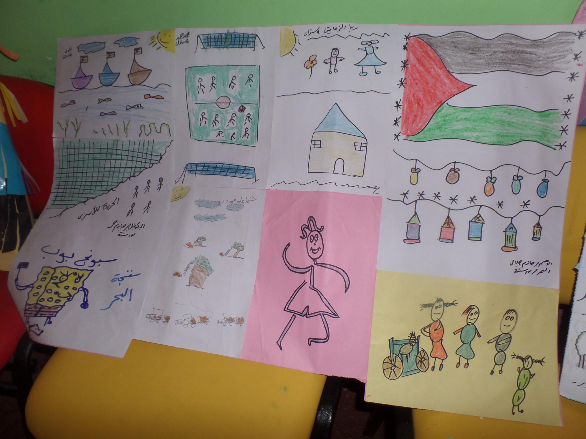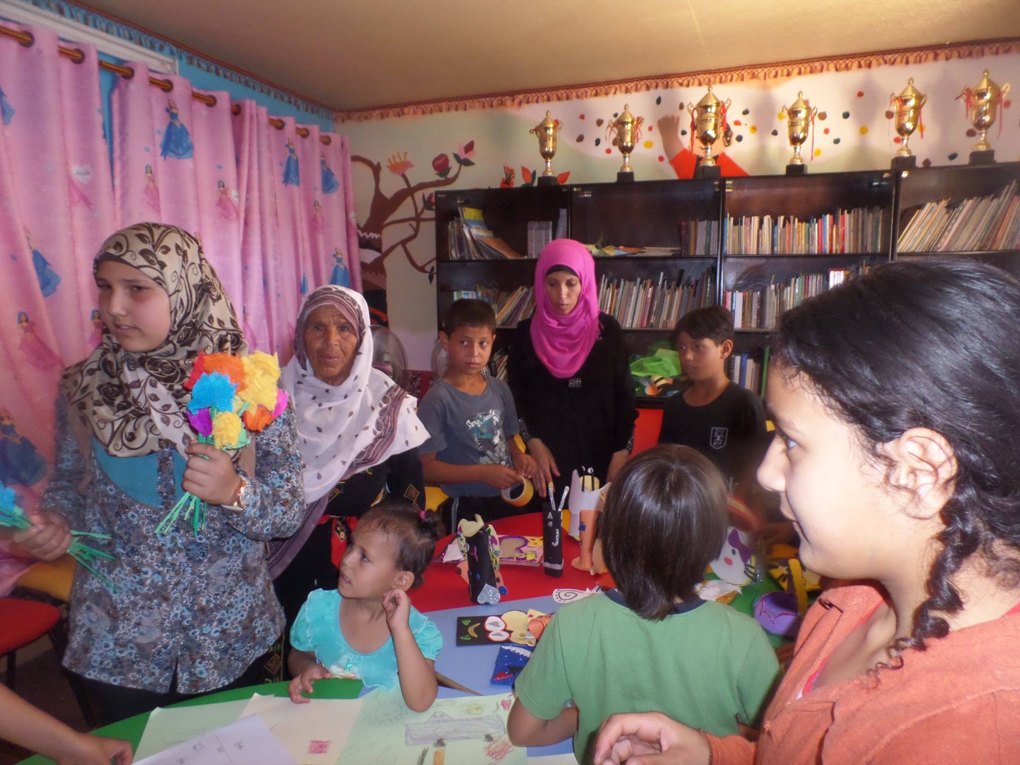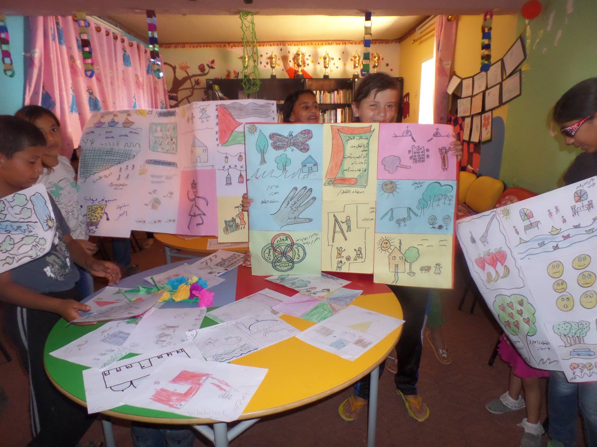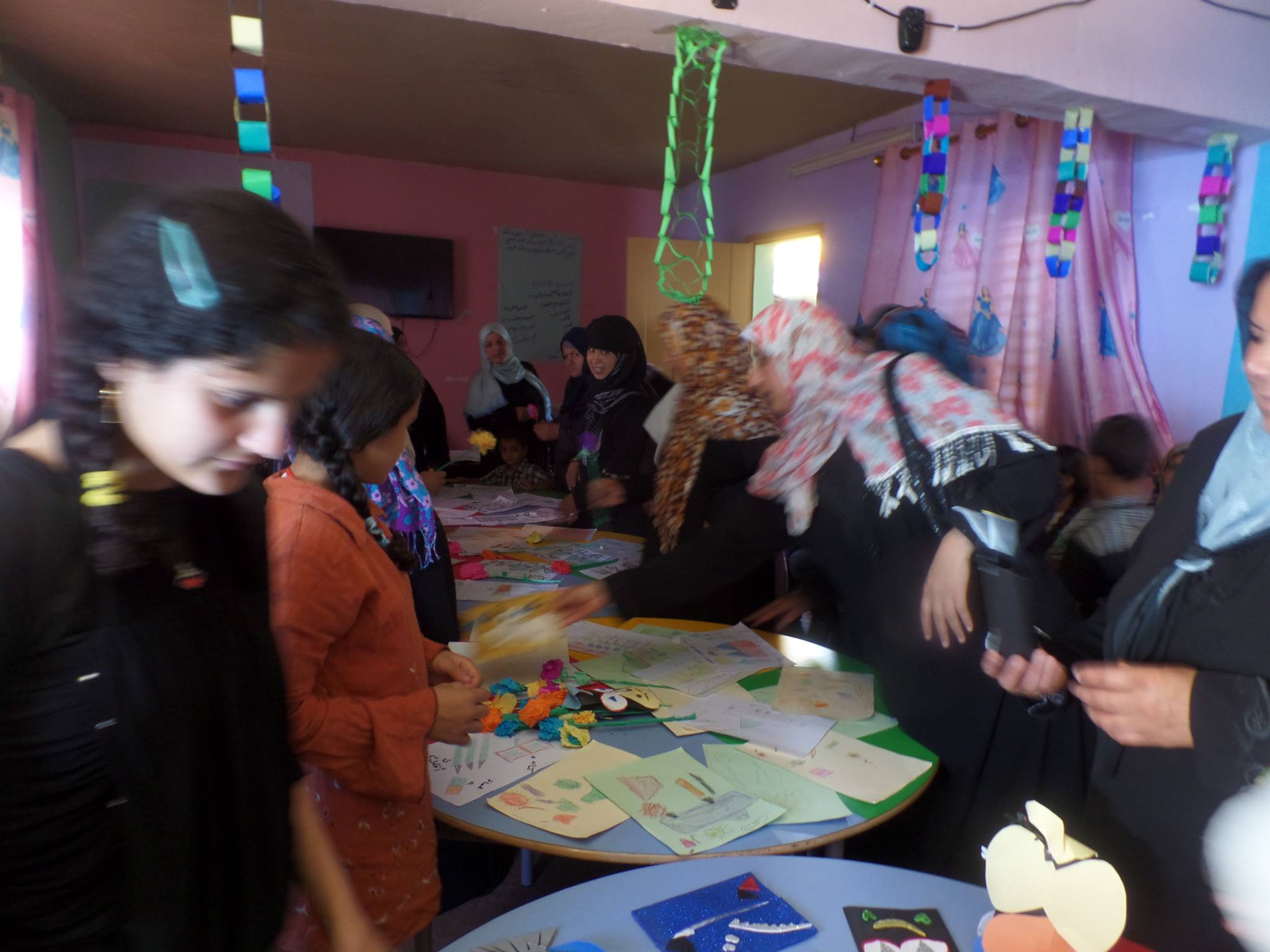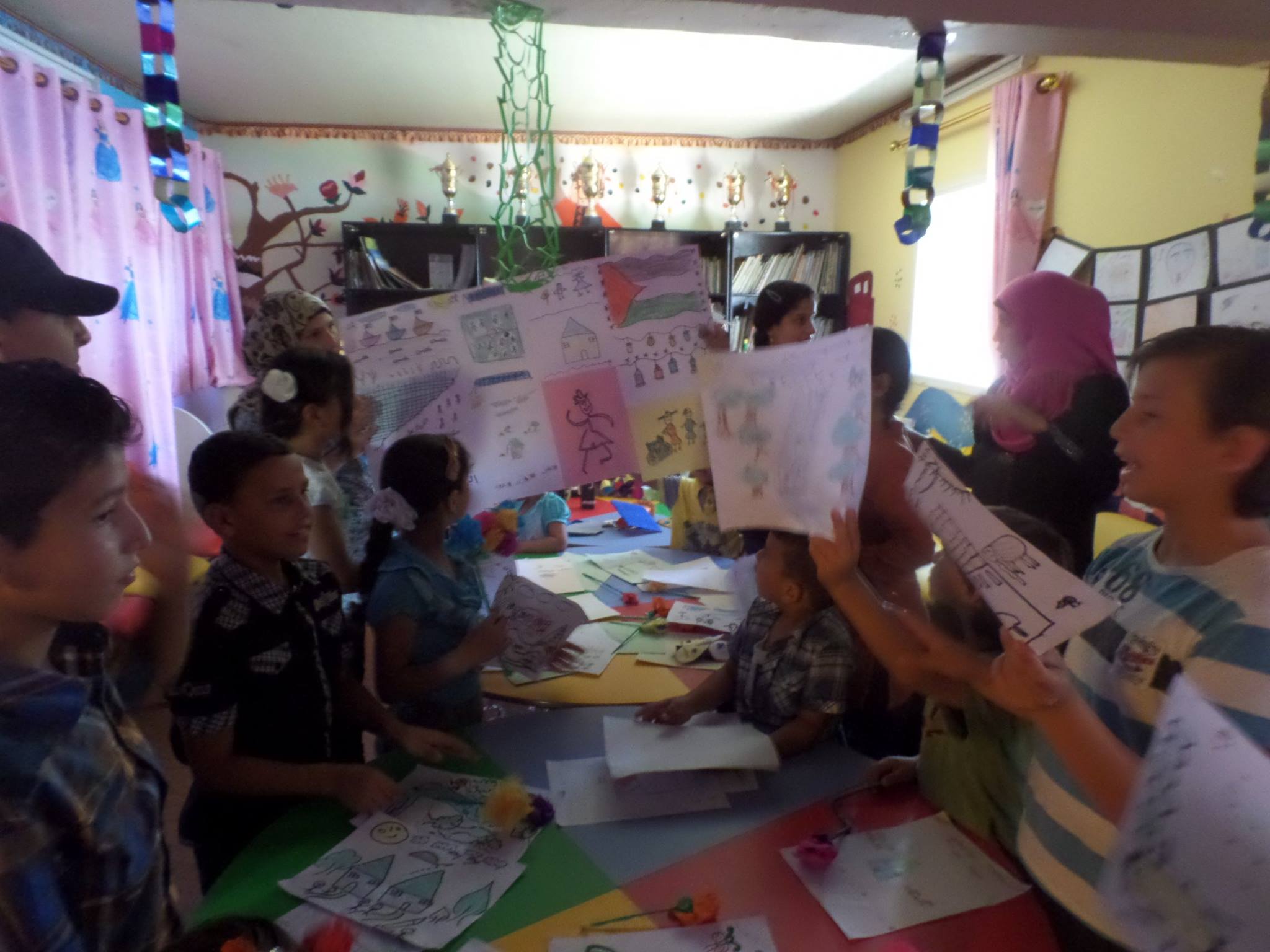 We enclose some expressive pictures of the latest exhibition of the outcome of the children activities at al Sikka library*, in the presence of mothers who are sharing the smiles of their children; thus reflecting the struggle and determination of our children and people to their Right to Life, to Justice, Dignity and to Books!