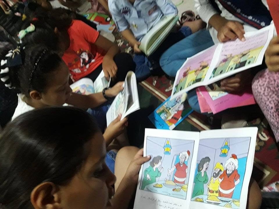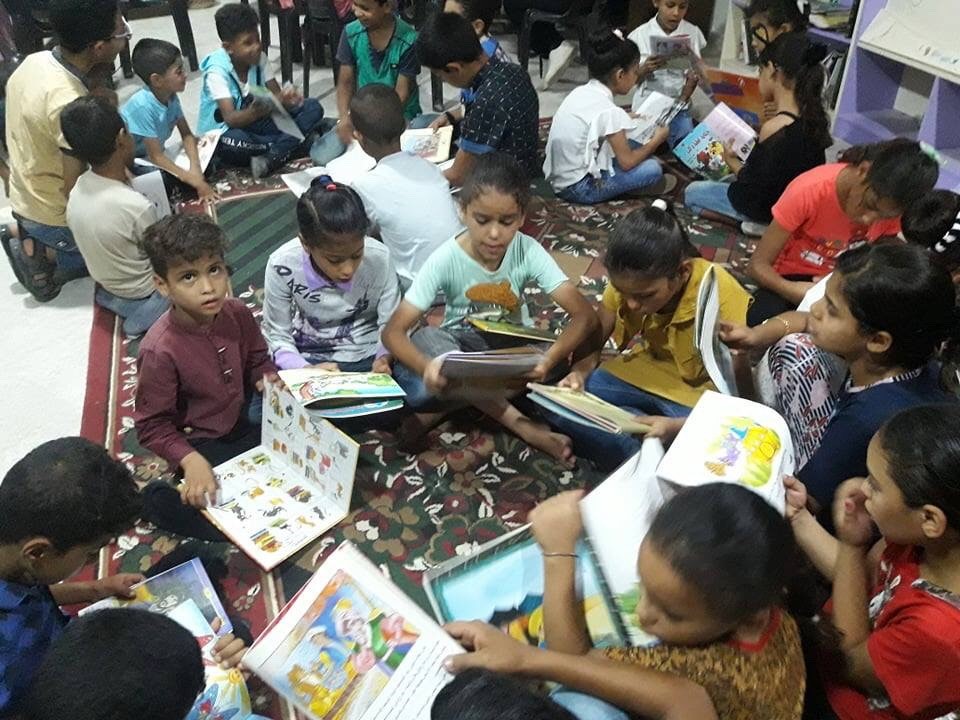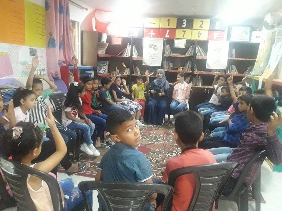 A number of stories are read to the children participating in the various library activities regularly; whereby many ways are used to present the story but mainly reading the story and opening the way to discuss it in all its details and constituents.
