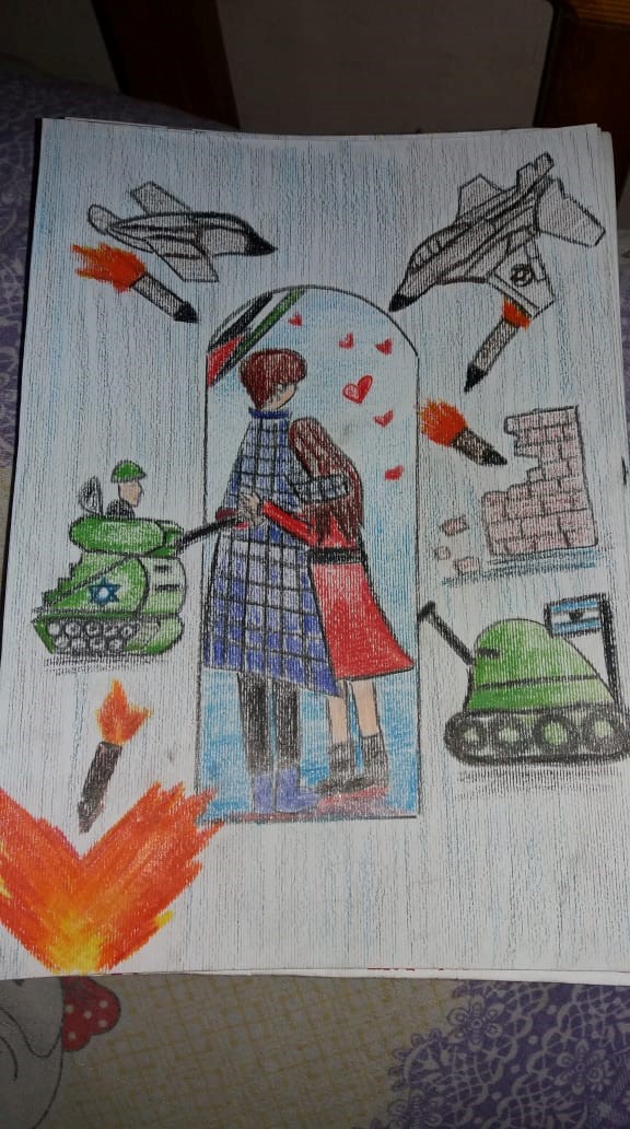 ومن مآسي الاحتلال انه يصعب الحُبّ ، وهذا ما حدث مع أخي في الواقع، فقد أحبّ فتاة من قرية "قبيا"، تحمل الهويّة الفلسطينيّة الخضراء، ويُمنع دخولها القدس.. ولكن بالرغم من ذلك تزوجا، وأنجبا "نائل". نائل ابن أخي وعمره اربع سنوات مُشتت، فوراء الجدار يعيش حياة، وبداخله حياةٌ أُخرى، ولا يتسطيع أن يكون معنا ومع أُمّه في المكان والزمان ذاته.. حين يكون داخل الجدار يحنُّ لأُمّه.. وعندما يكون بالضفّة الغربيّة يحنّ لبقيّة أهله وأقربائه.. فيمتلئ بالمشاعر السلبيّة المتناقضة الكافيّة للبكاء والصراخ ، اتظنون ان الاطفال لا يشعرون بما يحدث?!