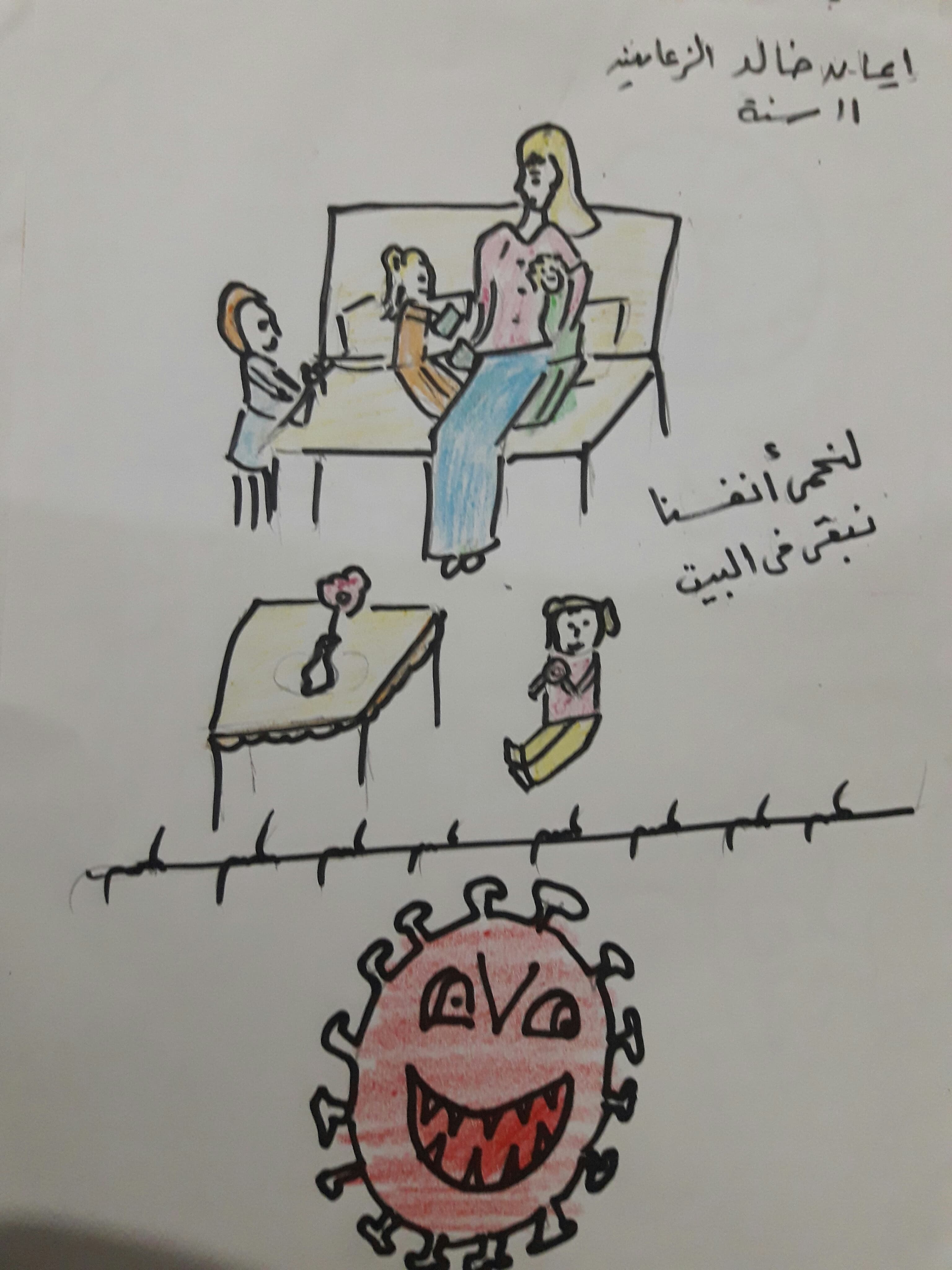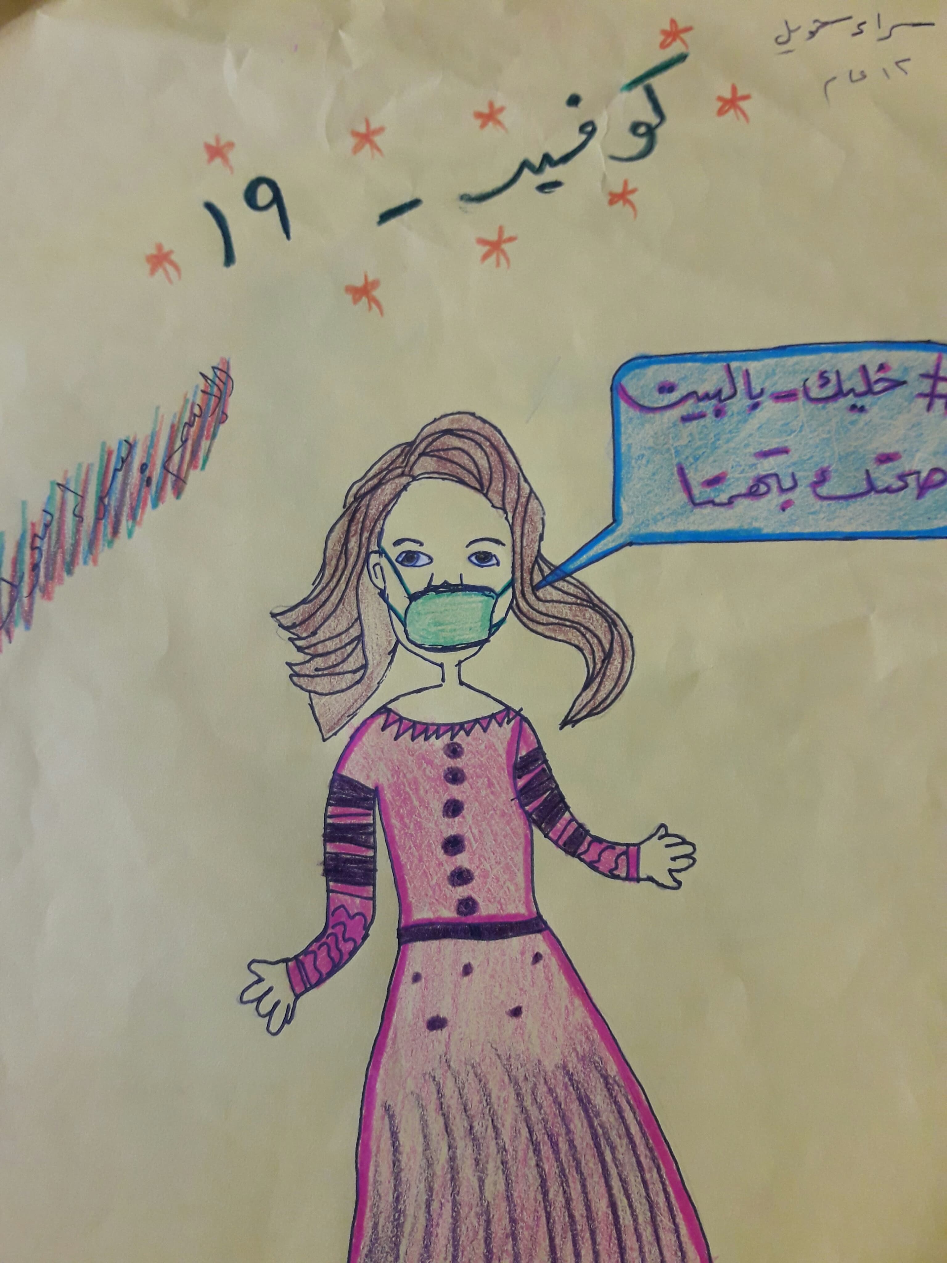 عندما اخذوا ابي على الحجر الصحي في مراكز الحجر اصبح البيت كئيبا وبكيت كثيرا لكن امي طمئنتني. تحدثنا سويا حول ان مهنة ابي كطبيب جعلته يكون في مقدمة الاشخاص الذين يدافعون عنا جميعا ضد هذا المرض لكنني كنت خائفة ولم يطمئن قلبي الا بعد ان انهي الحجر وعاد لنا بصحة جيدة بعد ان كان يعالج الاشخاص المحجورين. حدثنا عن خطورة الفايروس وان الوقاية والالتزام بالبيت هو حماية لنا وللوطن والآخرين.