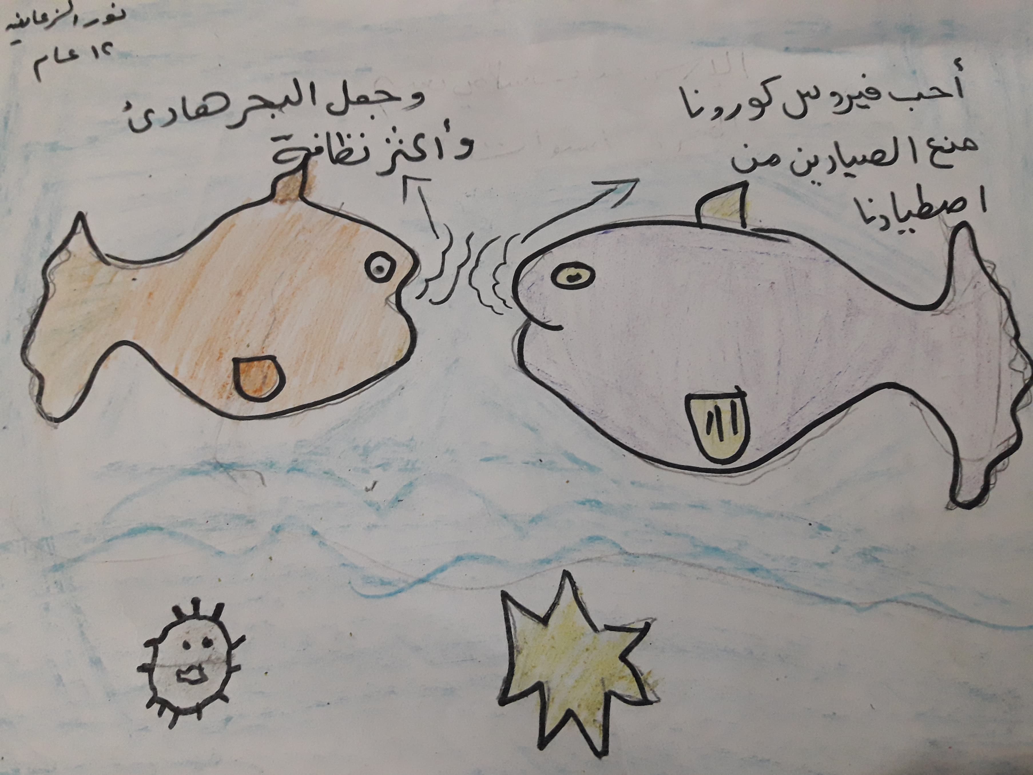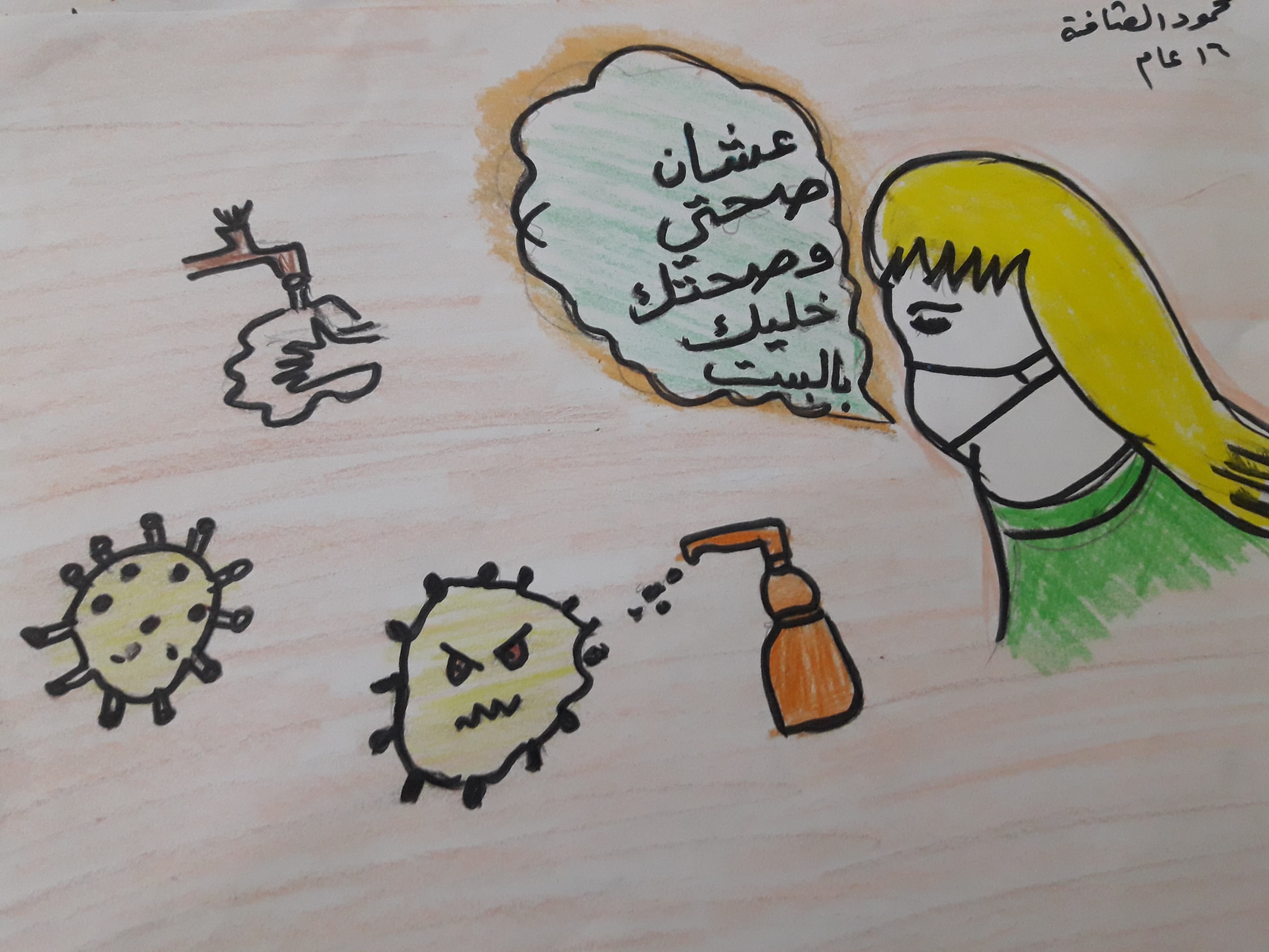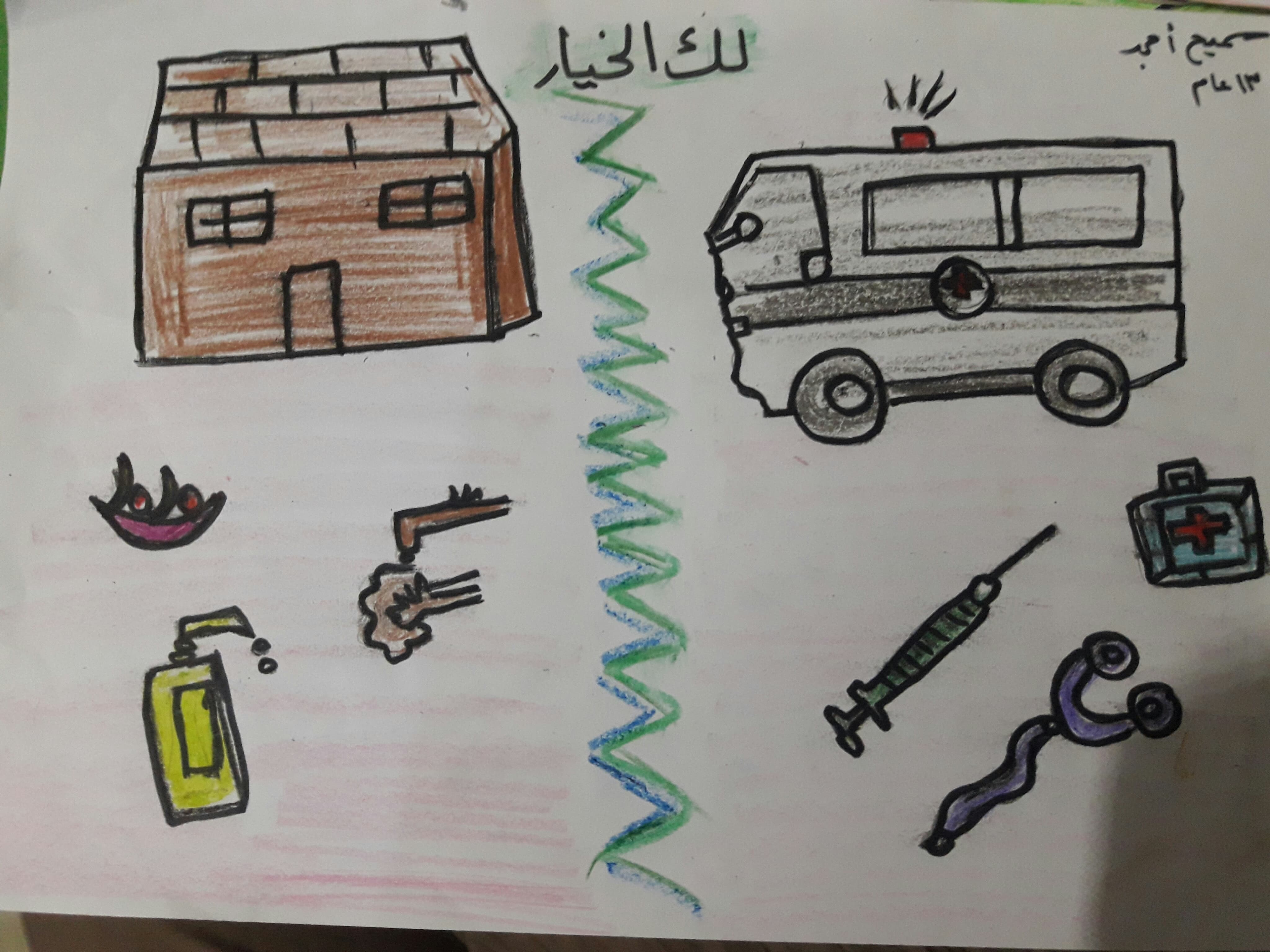 عندما اعلن الحجر الصحي سمعت ابي وامي يتحدثان كيف سنأكل ونشرب بدون عمل ونحن في الحجر الصحي. ولكن انا حملت لهما بشارة الخير فلقد سمعت في الاخبار ان الحكومة ستقوم بتوزيع ما يلزم للعائلات خلال الحجر الصحي، لكن امي وابي ضحكا ولم تكن ضحكة مفرحة فقالت امي نحن في حصار وجوع ومأساة منذ عهد طويل ولم يساعدنا احد ولن يستطيع احد ان يساعدنا.