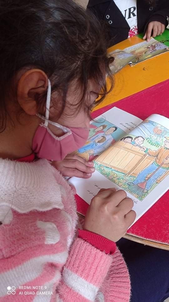 Children returned to the library after long weeks of lockdown due to the Covid -19 pandemic. We prepared the library with safety measures and sterilization. Children were looking forward with passion to reading stories that will take them to places where they feel quietness and comfort and through reading they fly to another world free of suffering, without chains or barriers.