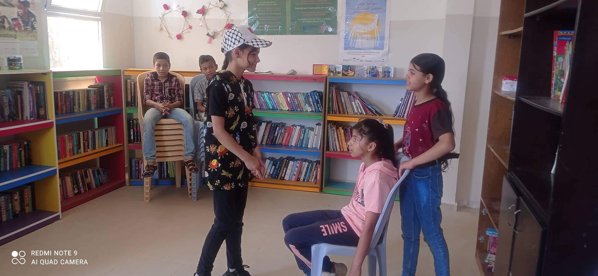 كما تم تنفيذ نشاط درامي، بعد أن تم عقد جلسة تعبيرية استطاع الأطفال من خلالها التعبير عن مشاعرهم في عدد من المواقف، كالفرح و الحزن و الخوف ليكون الأخير مرتبطًا بتعرضهم للتنمر. استطاع الأطفال من خلال المسرح التعبير عما يمرون به أثناء تعرضهم للتنمر. حيث شارك الاطفال أدوارهم ببراعة وعبروا عن مشكلة التنمر وطرق حلها والتعامل معها و كيفية الحد منها.